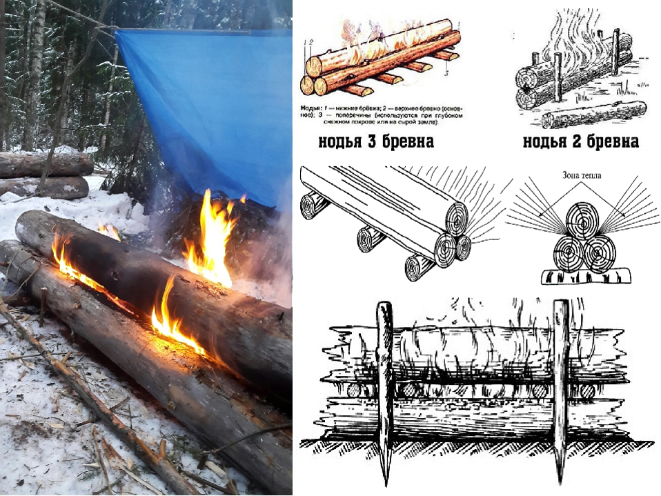 Охотник уходил на день или несколько дней, ловушек могло быть несколько десятков, и каждую нужно проверить, при необходимости починить и так далее. Поэтому в лесу на расстоянии дневного перехода обустраивались места для ночлега. Это могли быть охотничьи домики с лабазами (амбарами на высоких бревенчатых «ногах»), или навесы от ветра и снега, обогреваемые кострами из длинных бревен («нодья», «нутья», «най арась»). Даже в тридцатиградусный мороз огонь, разведенный меж двух бревен, обогревал охотника до шести часов. Также давали тепло хозяину собаки, ложась на ноги.